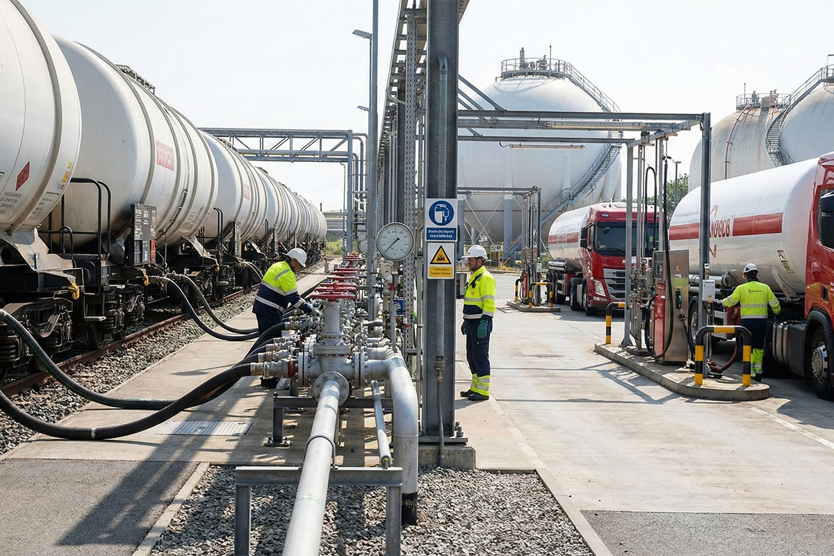 Naša infrastruktura obuhvata pretakališta za vagone i auto-cisterne, kolnu vagu, punionicu boca i auto-gas stanicu. Brz odziv, precizna kontrola i pouzdana logistika čine nas prvim izborom klijenata u regionu.